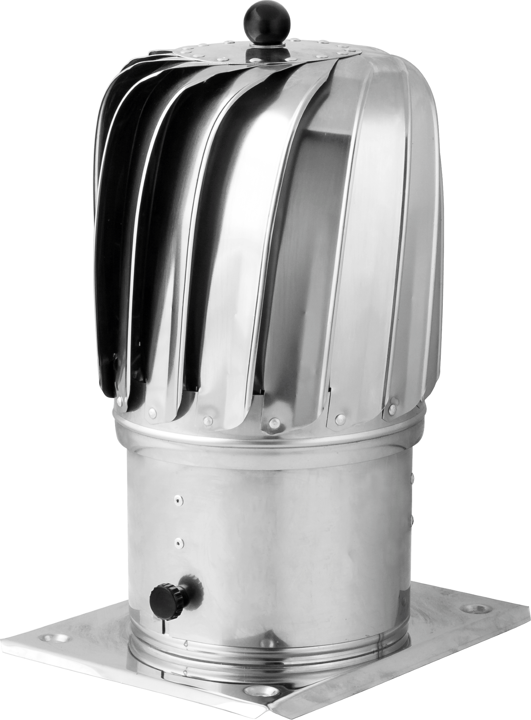 Elegancka nasada kominowa obrotowa z myślą o wyglądzie i funkcjonalności zakończeń kominowych i wentylacyjnych na dachach obiektów przemysłowych, komercyjnych jak i domowych. Nasada wykonana jest z blachy kwasoodpornej jej zadaniem jest wspomaganie ciągu poprzez wytworzenie podciśnienia w przewodzie wentylacyjnym, tym samym zapobiega przed ruchem wstecznym powietrza do kanału. Dzięki osłonie kanał zostanie zabezpieczony również przed opadami deszczu i tym samym jego korozją.